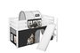 Gemaakt van massief grenenhout, wit gelakt. De halfhoogslaper is inclusief ondertent. Deze heeft één korte en één lange zijde. Gemaakt van 100% katoen. De tent wordt door middel van klittenband aan de halfhoogslaper vastgemaakt. De ondertent is afneembaar en kan worden gewassen op 30°C.