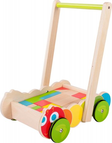 Deze kleine rups heeft 22 kleurrijke houten blokken.  Het ronde handvat is makkelijk vast te houden voor de eerste stappen van je baby.  Afmeting loopwagen: ca. 33 x 24 x 39 cm....