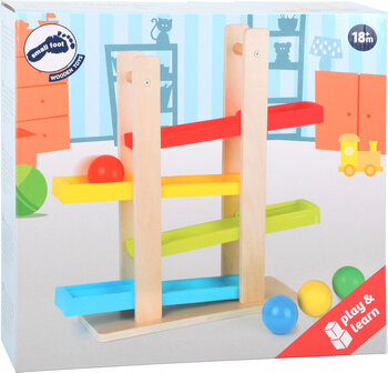 Leuke knikkerbaan voor veel speelplezier! Met 4 robuuste houten knikkers.  Afmeting: ca. 36 x 10 x 35 cm.  Diameter knikkers: ca. 4,5 cm.  Merk:  small foot Aanbevolen...