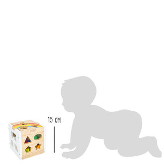 De 13 verschillend gevormde en gekleurde houten blokken bevorderen de motorische vaardigheden van kinderen. De houten deksel is afneembaar en kan er ook worden vergrendeld. Welk vormpassend element past in welke opening? Dit is langdurig vermaak met een leerrijk en leuk effect voor de jongste kinderen. Door de deksel te openen, kunnen alle insteekbare stukken weer worden verwijderd.